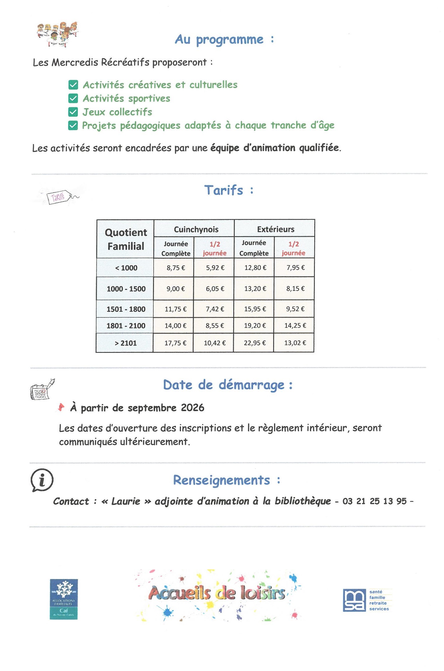 Les accueils de Loisirs de 2026