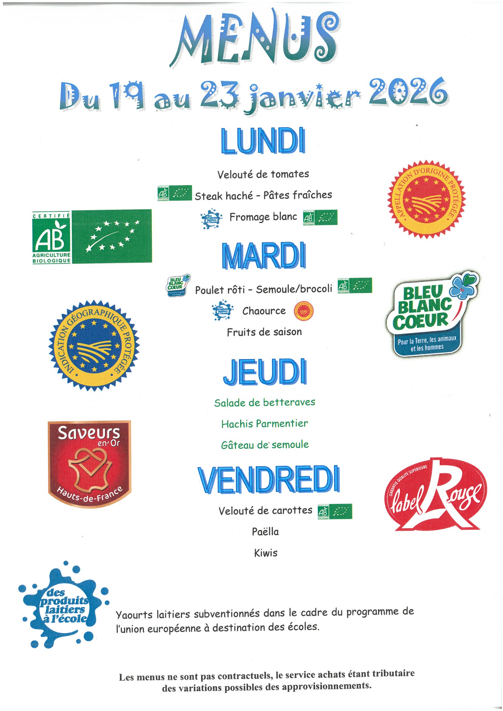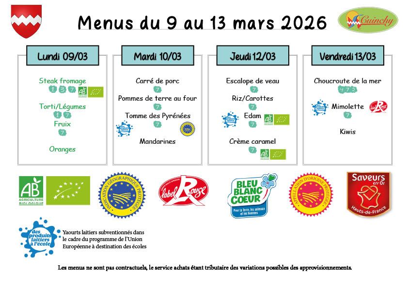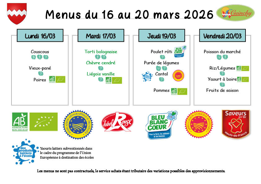 Menu restaurant scolaire